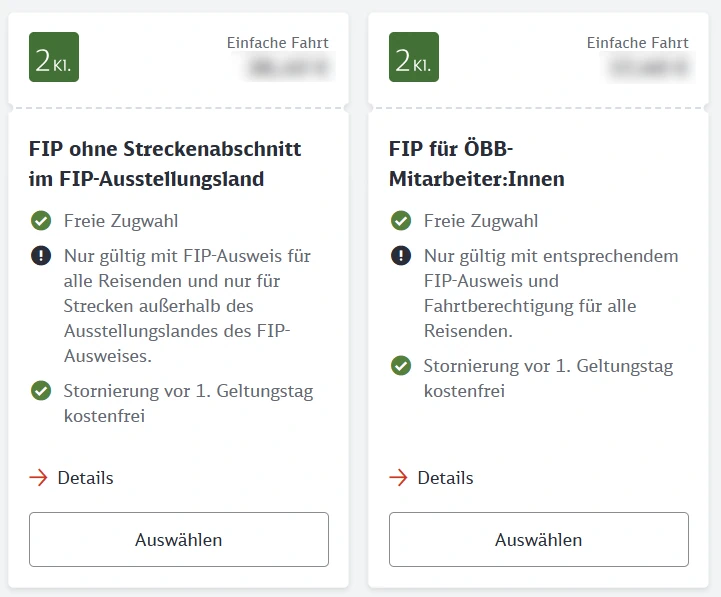 FIP 50 Tickets cannot be issued for trips between stations within the Copenhagen metropolitan area or the Aarhus-Grenaa region. Only trips beyond these regions are possible. FIP Coupons, however, are valid for trips within these regions.